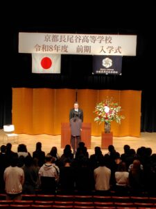 緊張と期待の表情の新入生を迎え、京都市呉竹文化センターにて令和8年度前期入学式が厳粛な雰囲気の中で挙行されました。